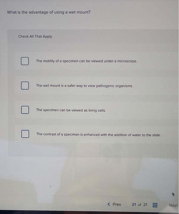 Solved What Is The Advantage Of Using A Wet Mount Check All Chegg Com